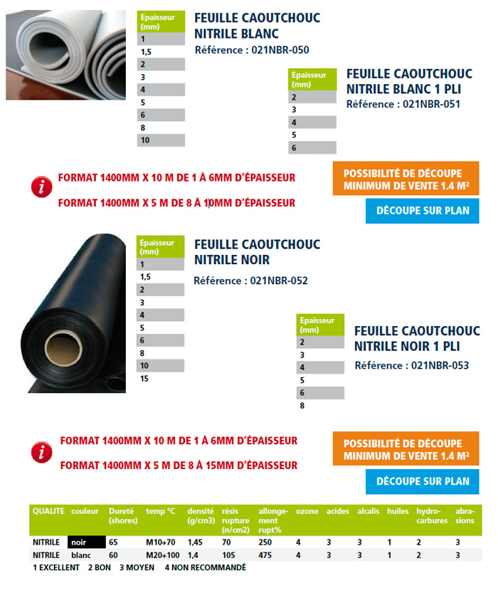 Feuille caoutchouc Nitrile blanc --- Référence : 021NBR-050