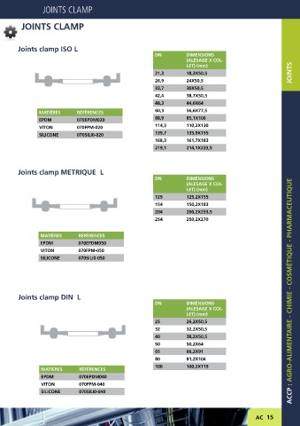 Joints clamp DIN L ACCP : AGRO-ALIMENTAIRE - CHIMIE - COSMÉTIQUE - PHARMACEUTIQUE