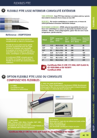 OPTION FLEXIBLE PTFE LISSE OU CONVOLUTE