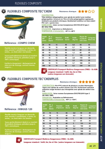 FLEXIBLES COMPOSITE TEC’CHEM Résistance chimique :