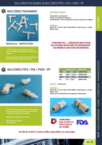 RACCORDS POLYAMIDE & RACCORDS PTFE / PFA / PVDF / PP