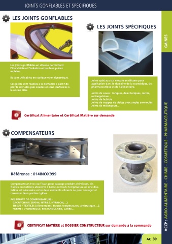 JOINTS GONFLABLES ET SPÉCIFIQUES