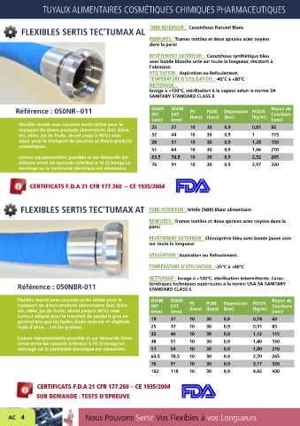 FLEXIBLES SERTIS TEC’TUMAX AT TUBE INTÉRIEUR : Nitrile (NBR) Blanc alimentaire
