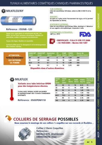 Tuyau très léger, flexible et maniable. CERTIFICATS : F.D.A 21 CFR 177.2600