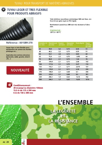 Référence : 001SBR-270 Diamètre int Diamètre ext Pression Dépression Poids (kg/m) Rayon