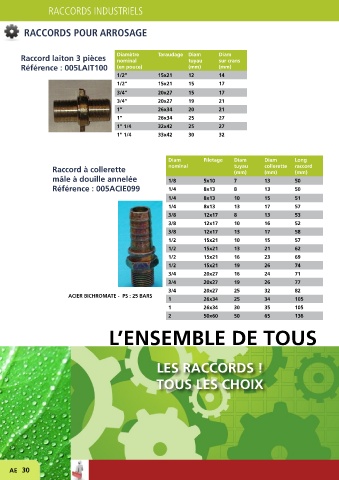 Raccord laiton 3 pièces Diamètre Taraudage Diam Diam