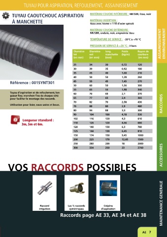 Utilisation pour lisier, eaux usées et boue. RACCORDS