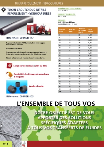 TUYAU CAOUTCHOUC NITRILE TEMPÉRATURES D’UTILISATION :