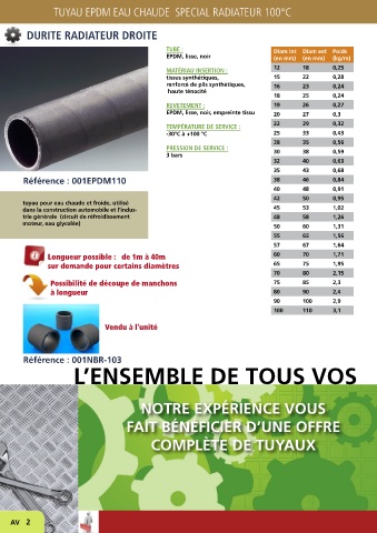 TUYAU EPDM EAU CHAUDE SPECIAL RADIATEUR 100°C