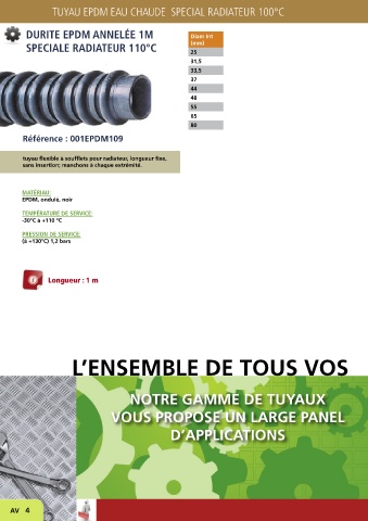TUYAU EPDM EAU CHAUDE SPECIAL RADIATEUR 100°C