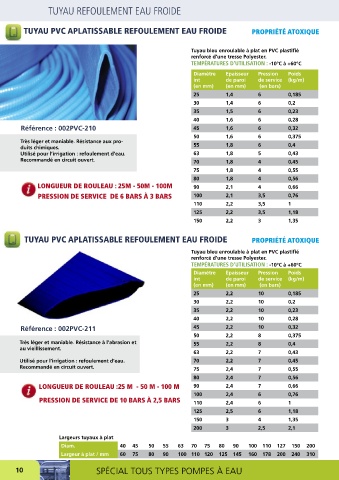 TUYAU PVC APLATISSABLE REFOULEMENT EAU FROIDE PROPRIÉTÉ ATOXIQUE