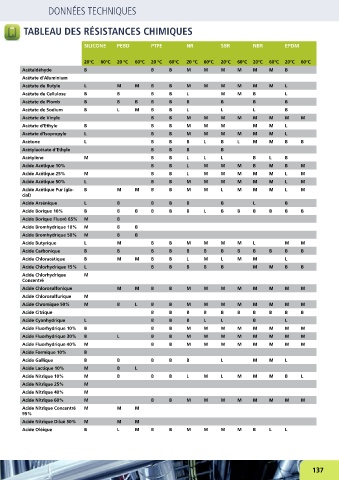 TABLEAU DES RÉSISTANCES CHIMIQUES