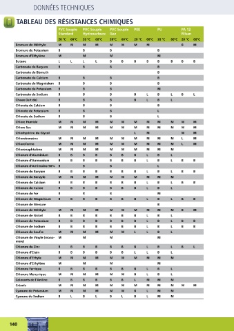 TABLEAU DES RÉSISTANCES CHIMIQUES