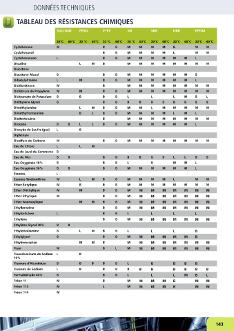 TABLEAU DES RÉSISTANCES CHIMIQUES