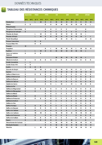 TABLEAU DES RÉSISTANCES CHIMIQUES