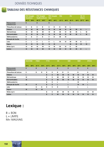 TABLEAU DES RÉSISTANCES CHIMIQUES
