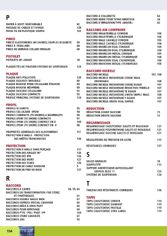 RACCORDS À CAMES 58, 59, 60 TABLEAU DES RÉSISTANCES CHIMIQUES 136