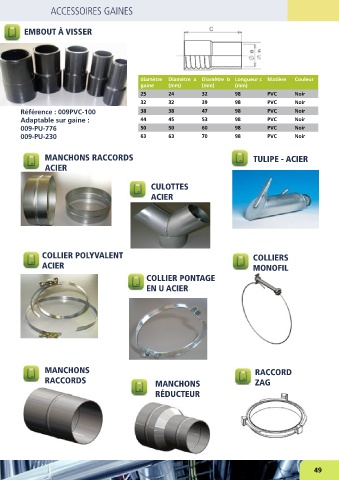 Adaptable sur gaine : 44 45 53 98 PVC Noir