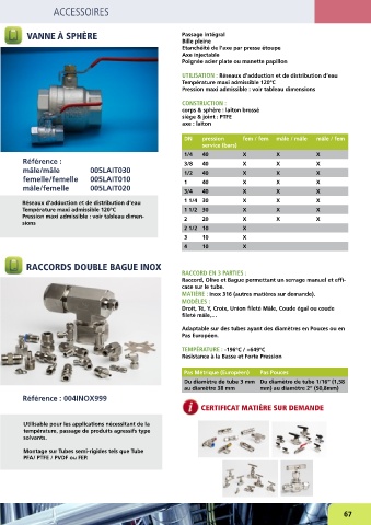 MATIÈRE : Inox 316 (autres matières sur demande).
