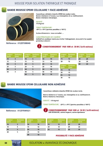 BANDE MOUSSE EPDM CELLULAIRE NON ADHÉSIVE